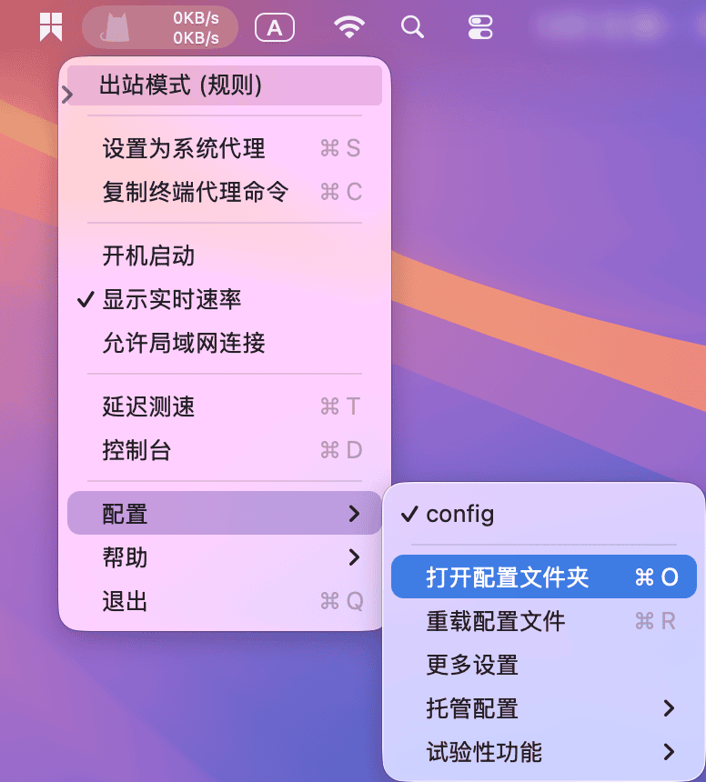右键 clashx ,点击 配置,点击 打开配置文件夹