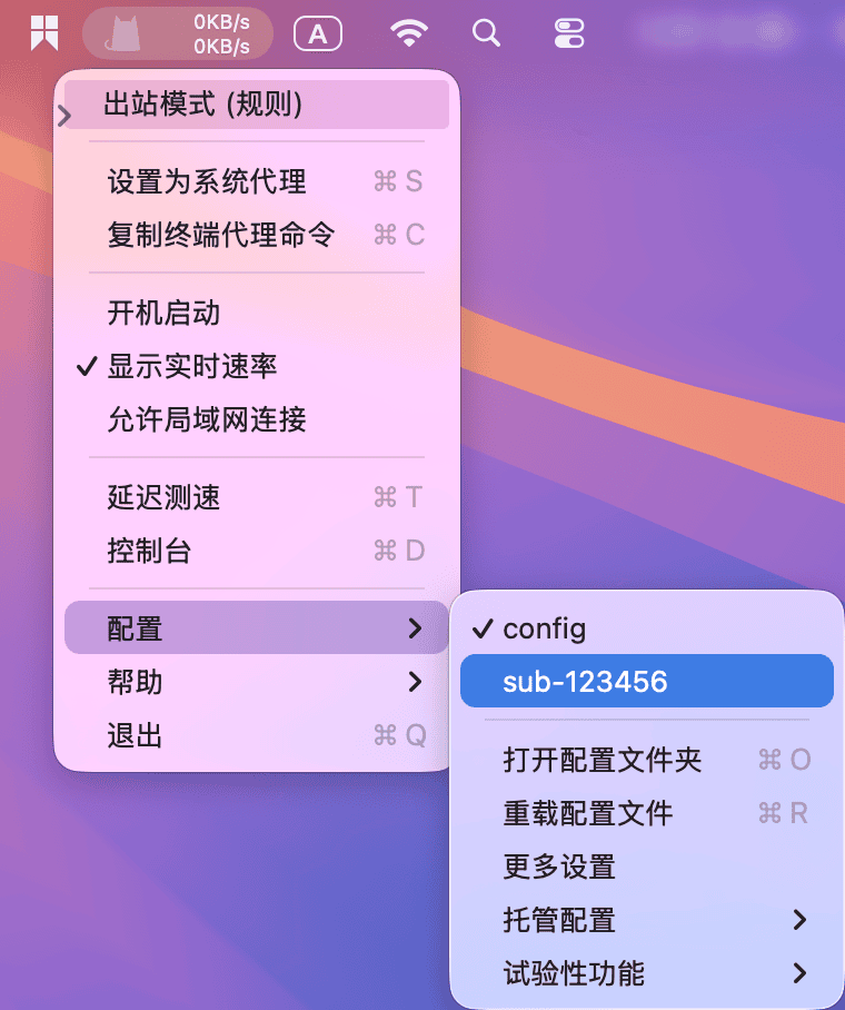 右键 clashx,点击 配置,选择下载的配置的文件名